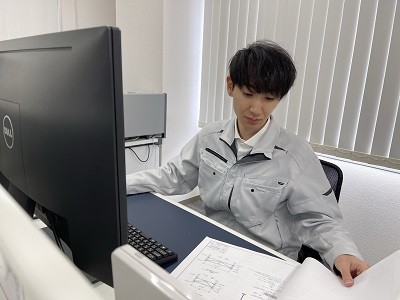 【設計技術職】営業担当が顧客とのヒアリングによって持ち帰ってきた施工条件や現場の地形情報を基に、現場に最適な鋼材を強度計算によって選定し、仮設案を設計します。CADによる作図や施工方法の提案を行います。