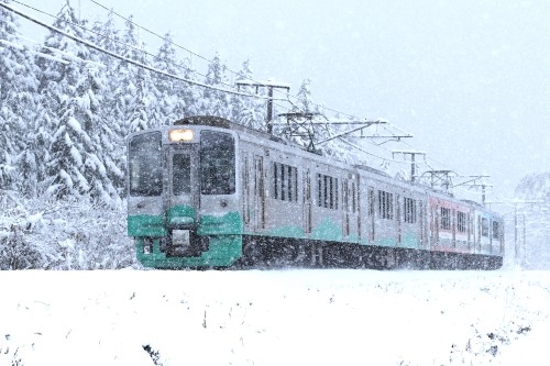 豪雪地帯を力強く走る