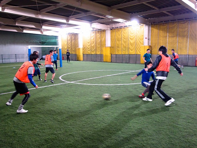 仕事を終わってフットサルを楽しんでいる若手社員の皆さんです。