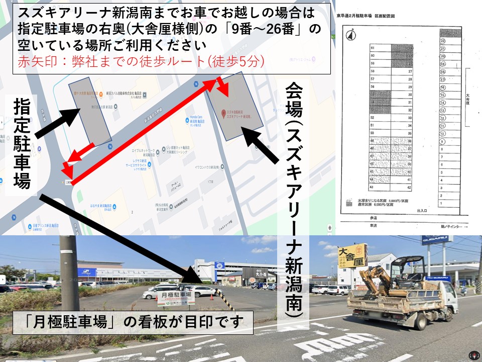 | 会場までの道のり | 新潟交通南部営業所バス停より徒歩10分 |